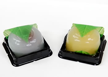 くず桜は、冷蔵庫へ入れますと固くなりますが、水まんじゅうは、冷蔵庫で冷やしてお召し上がり下さい。 甘さも控えめで、のどごしも良いです。 左:こしあん 右:杏一粒入り 6月~8月