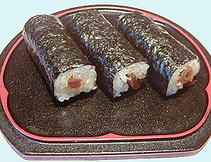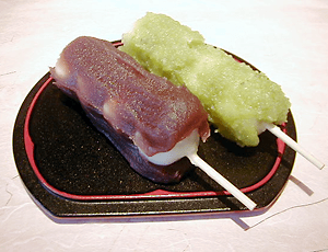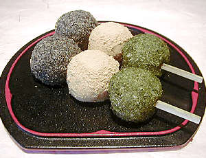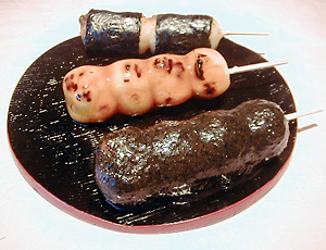 当店一番の人気バラエティに富んだ3つの味、こしアンのゴマ、青のり、梅肉入り白アンのきなこが並んだ彩り鮮やかな一本、是非ご賞味下さい。 賞味期限:製造から3、4日 1本225円(税込)